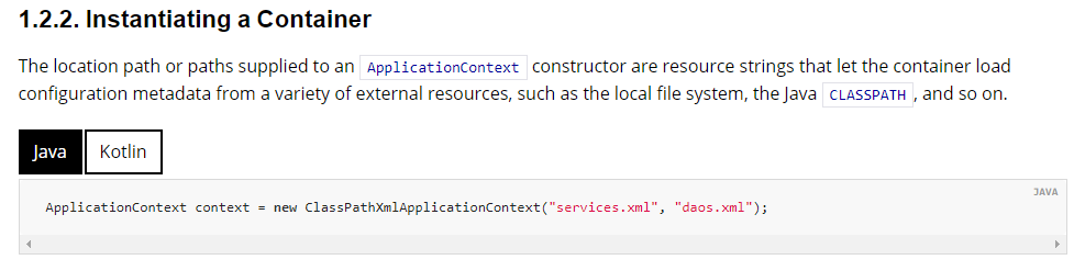 - Block Switch - 문서의 예제에 탭을 추가하여 스위칭할 수 있도록 하는 기능 제공 (Spring Framework reference의 예제 참고)