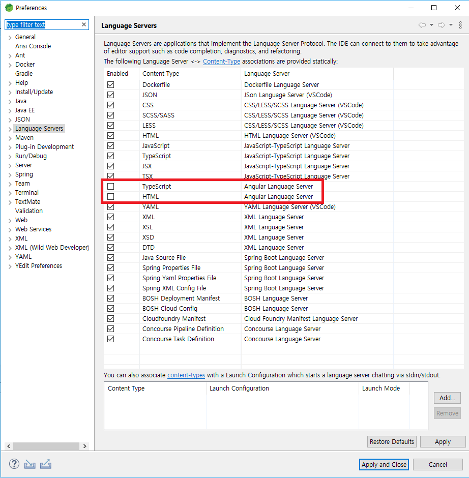 STS 4.6.2 버전 이후 Eclipse의 Language Server기능이 적용되었다.