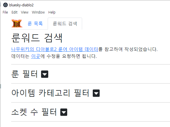 테스트로 예전에 만들어봤던 diablo2 룬워드 검색 페이지를 빌드해보았다.
