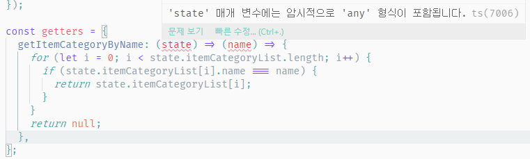 "Parameter '...' implicitly has an 'any' type." 에러