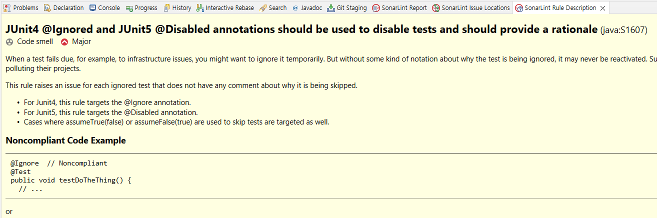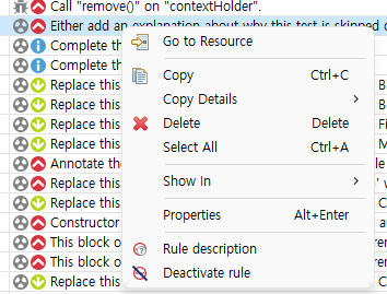 (마찬가지로 SonarLint Report 창의 해당 항목에서 오른쪽 마우스를 클릭해도 동일하게 확인할 수 있는 Rule description 항목이 있다.)