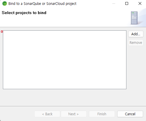 연결 설정을 마치게 되면 Sonaqube에 연결할 프로젝트를 설정하는 창이 뜬다.