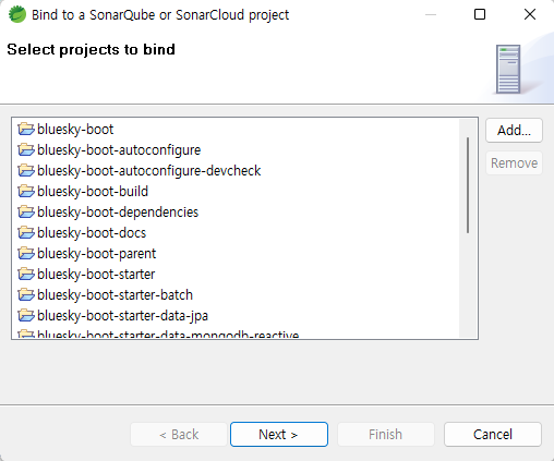 선택한 프로젝트가 Sonarqube에 어떤 프로젝트와 연결되어야 하는지 선택한다.