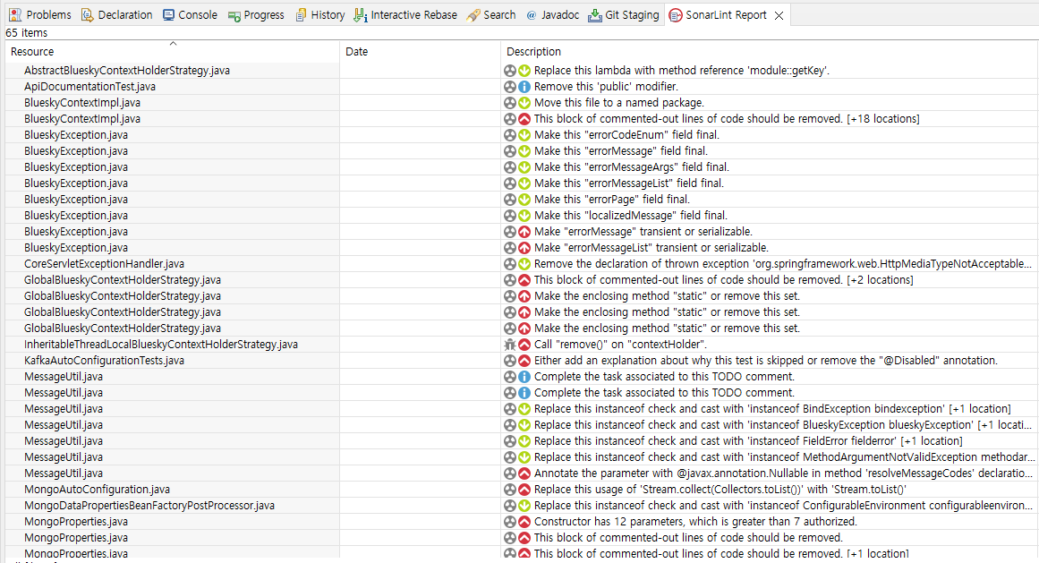 반면에 SonarLint 플러그인 자체만으로 코드를 작업하면서 상당히 많은 도움을 주었다.
