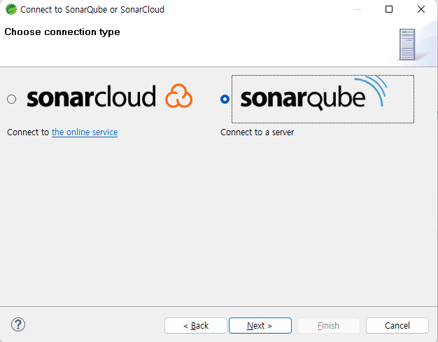 sonarcloud, sonarqube를 선택하여 설정할 수 있다.