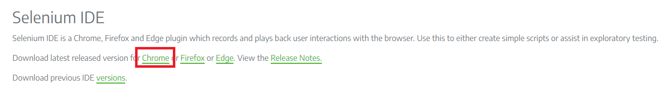 Selenium IDE는 Chrome이나 Firefox, Edge에서 확장 프로그램으로 설치하여 사용한다.