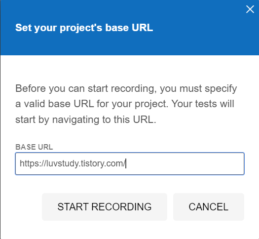 test case를 테스트 대상 url을 설정하고 START RECORDING을 선택한다.