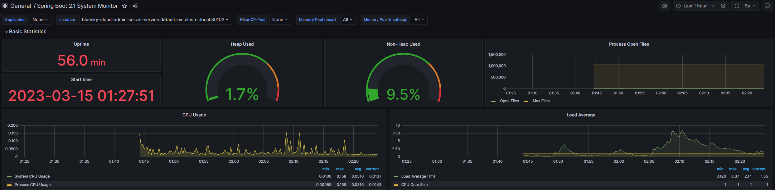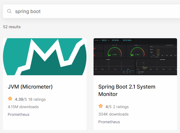 grafana dashboard를 찾아보니 Spring Boot 2.1 System Monitor란 dashboard가 보인다.