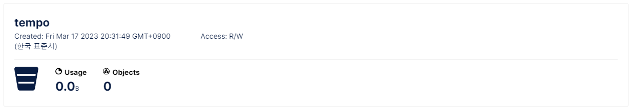 tempo의 설정에서 minio의 bucket과 access key, secret key를 지정하였었다.