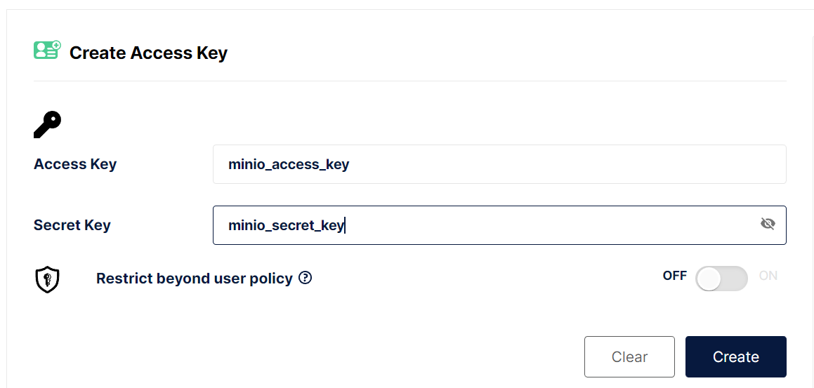 사용자가 직접 access key와 secret key를 지정하여 만들 수 있다.