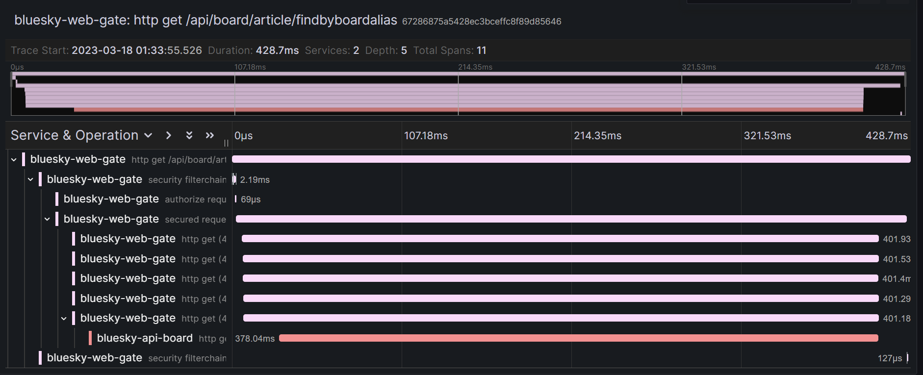 trace id가 application 별로 따로 설정되어 호출에 대해 여러 application 간 추적이 되지 않았다.