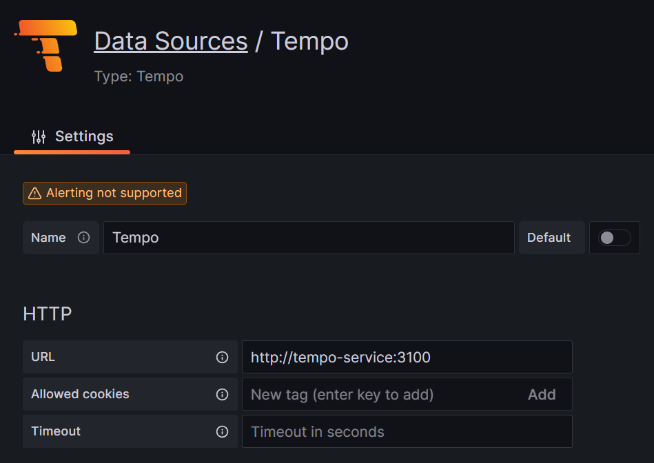 위 설정대로 진행하였으면 url은 http://tempo-service:3100이다.