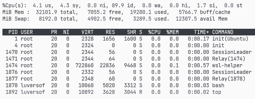 luversof@DESKTOP-L2MK9DU:/mnt/c/Users/bluesky$ free -h