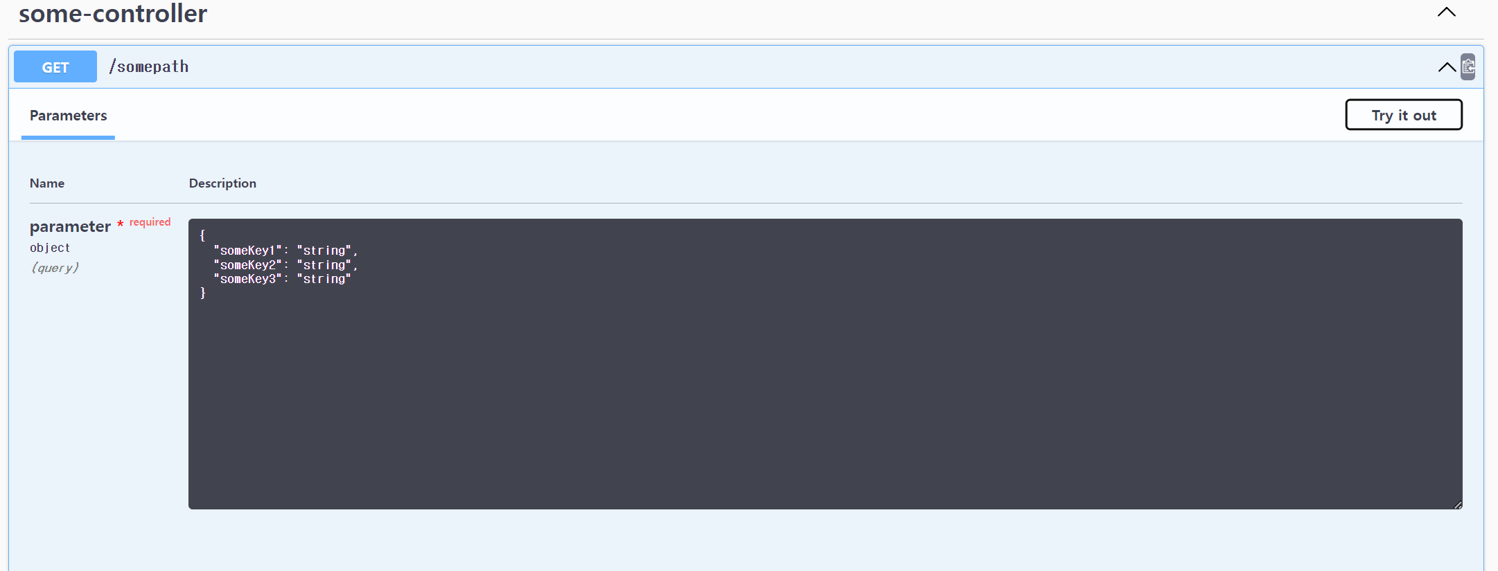 Try it out을 버튼을 선택하면 요청값을 수정할 수 있게 input 값이 활성화되고 실제로 요청할 수 있는 execute 버튼이 생긴다.
