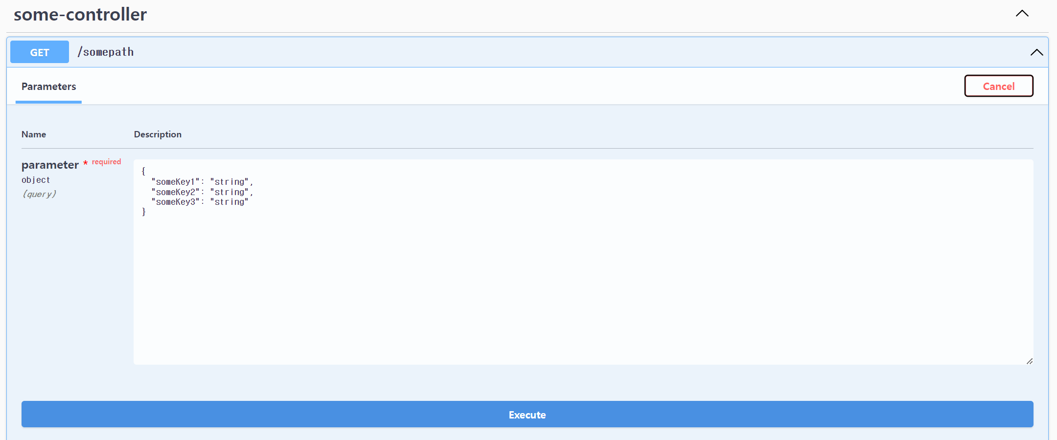 Try it out을 버튼을 선택하면 요청값을 수정할 수 있게 input 값이 활성화되고 실제로 요청할 수 있는 execute 버튼이 생긴다.