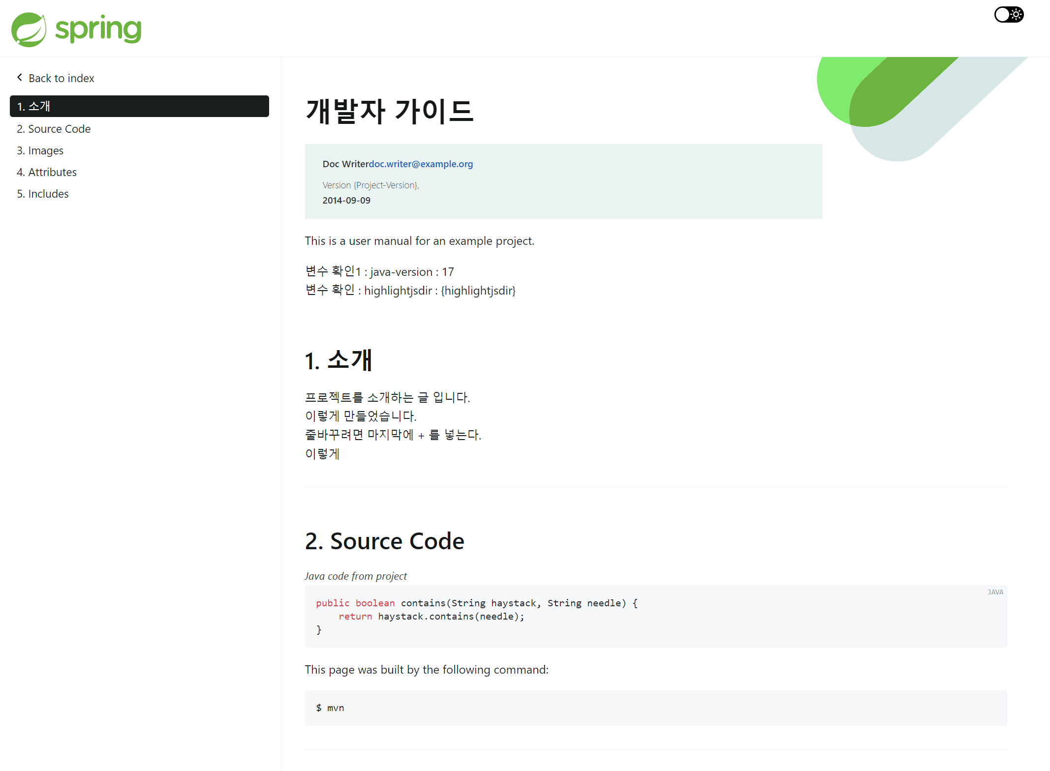 java maven에서는 asciidoctor-maven-plugin을 사용하여 문서를 생성한다.