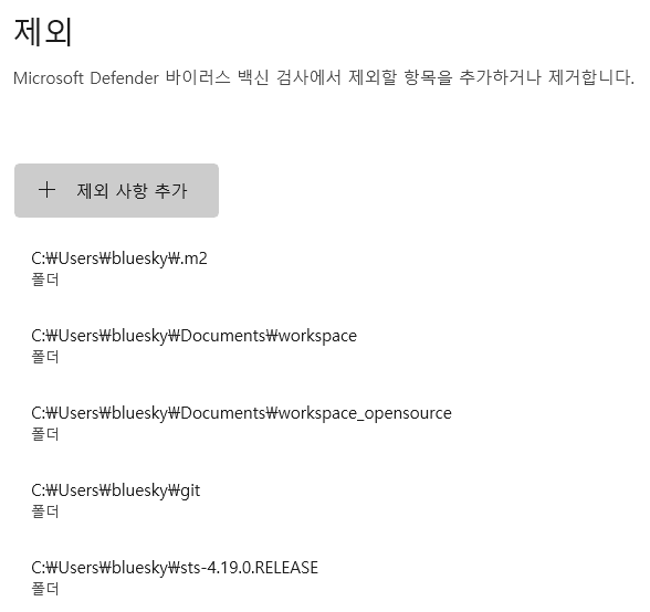 Windows Defender Eclipse(또는 STS) 예외처리 하기