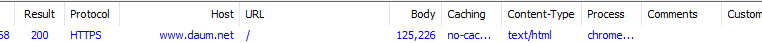 인증서를 설치하고 확인을 하여 Options 창을 닫고 다시 웹 요청을 하면 이후 요청부터는 파란색이나 검은색으로 활성화되어 캡처된다.