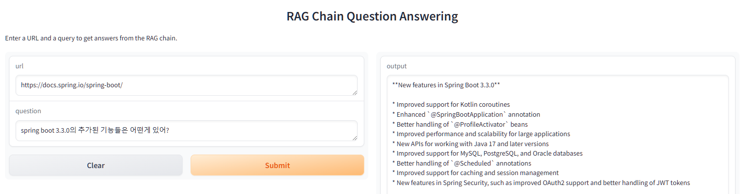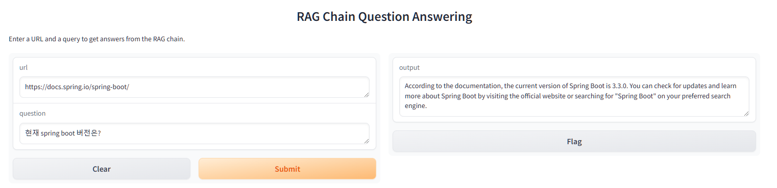 해당 영상에서는 예제가 2가지가 있는데 하나는 특정 주소의 데이터를 가져오면서 질문을 하는 예제였고 다른 하나는 주소와 질문을 입력하면 응답을 반환하는 예제였다.