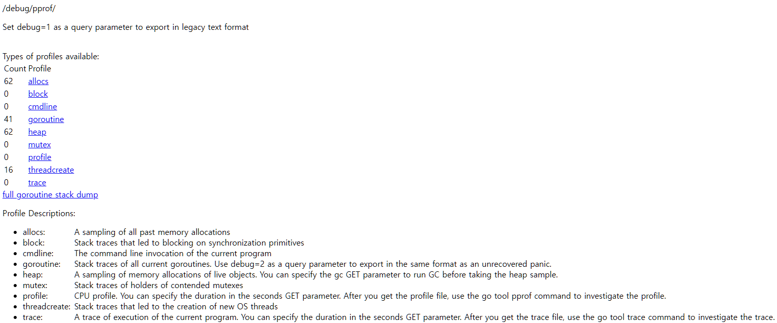 pprof는 Performance Profile (성능 프로파일)을 보여준다.
