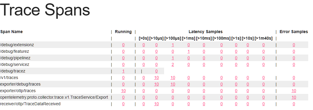 zpages는 web에서 별다른 도구 없이 opentelemetry-collector application의 상태를 확인할 수 있는 웹페이지를 제공한다.