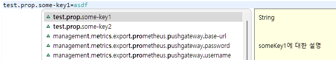 해당 property에 대한 값을 다음과 같이 additional-spring-configuration-metadat.json 에 정의해 주면