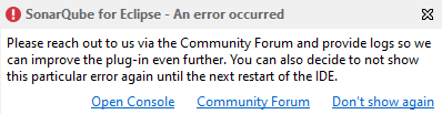 SonarQube for Eclipse 11.0.0 버전 업그레이드 이후 발생하는 문제인 듯한데 관련하여 sonar community에 언급되고 있다.