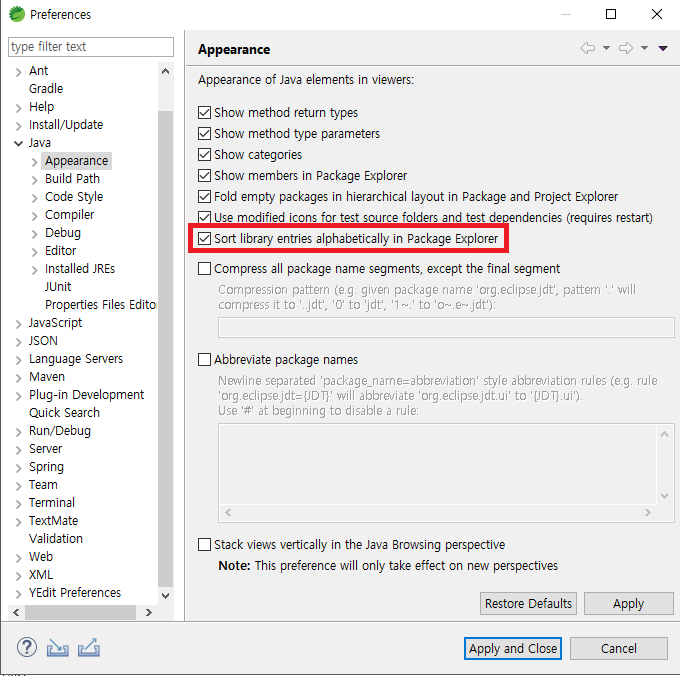 요걸 정렬하는 옵션이 Eclipse에 있다.