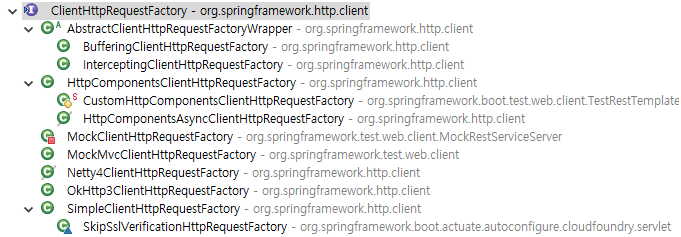 restTemplate 생성 시 clientHttpRequestFactory를 지정할 수 있는데 현재는 아래처럼 지원하고 있다.