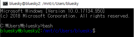이후 cmd 창에서 bash라는 명령어를 치면 해당 위치에서 bash 쉘로 전환이 된다.